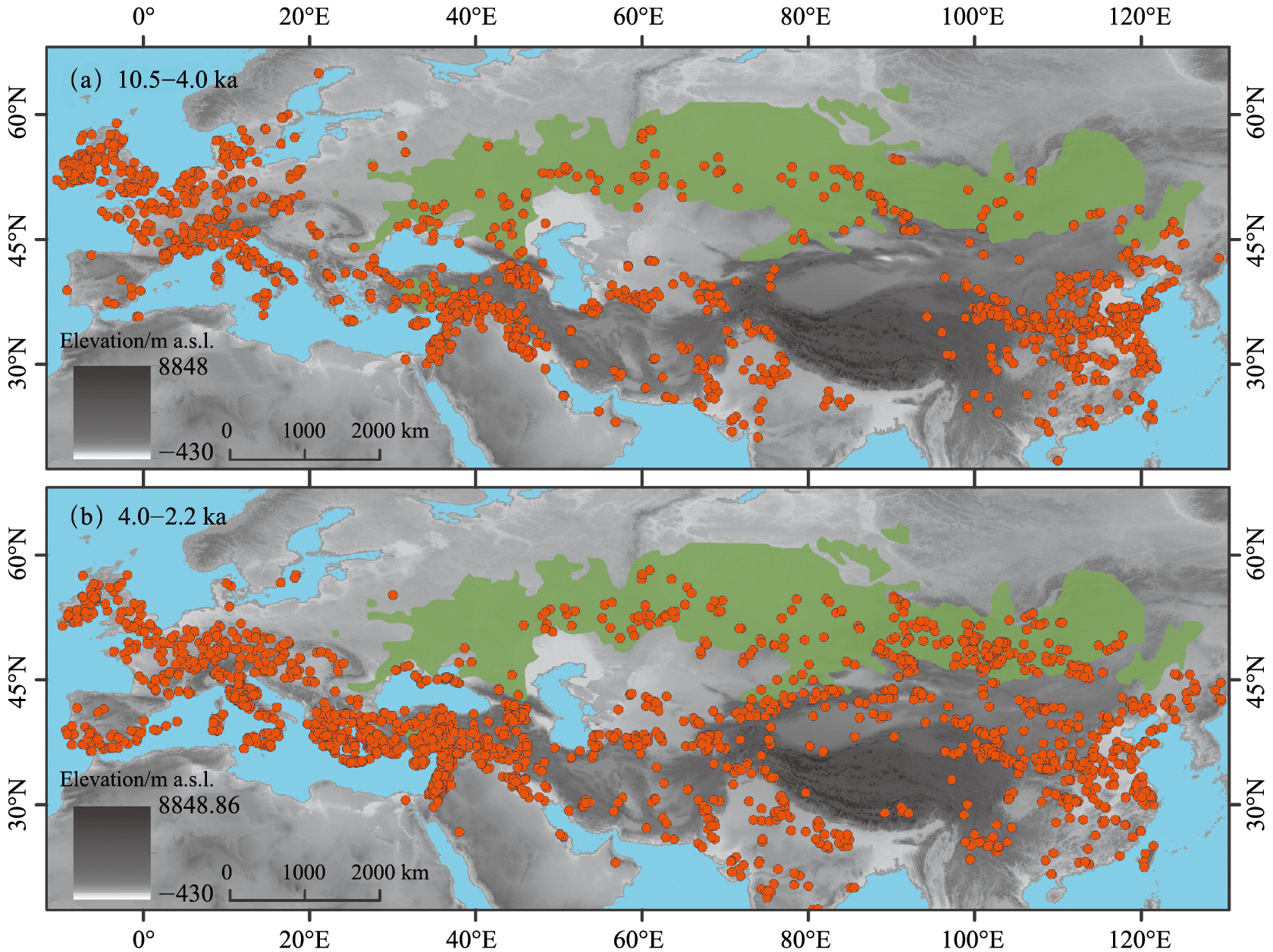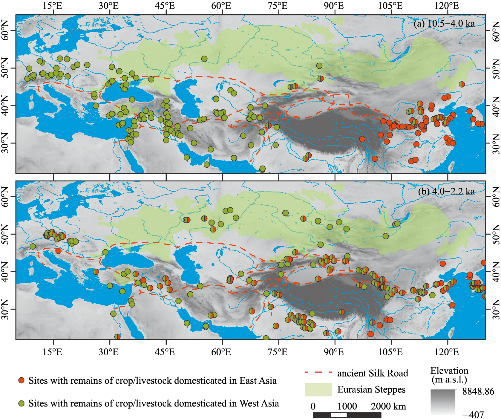 Dong, G., Du, L., Yang, L. et al., 2022. Dispersal of crop-livestock and geographical-temporal variation of subsistence along the Steppe and Silk Roads across Eurasia in prehistory. Science China Earth Sciences 65(7), 1187-1210.