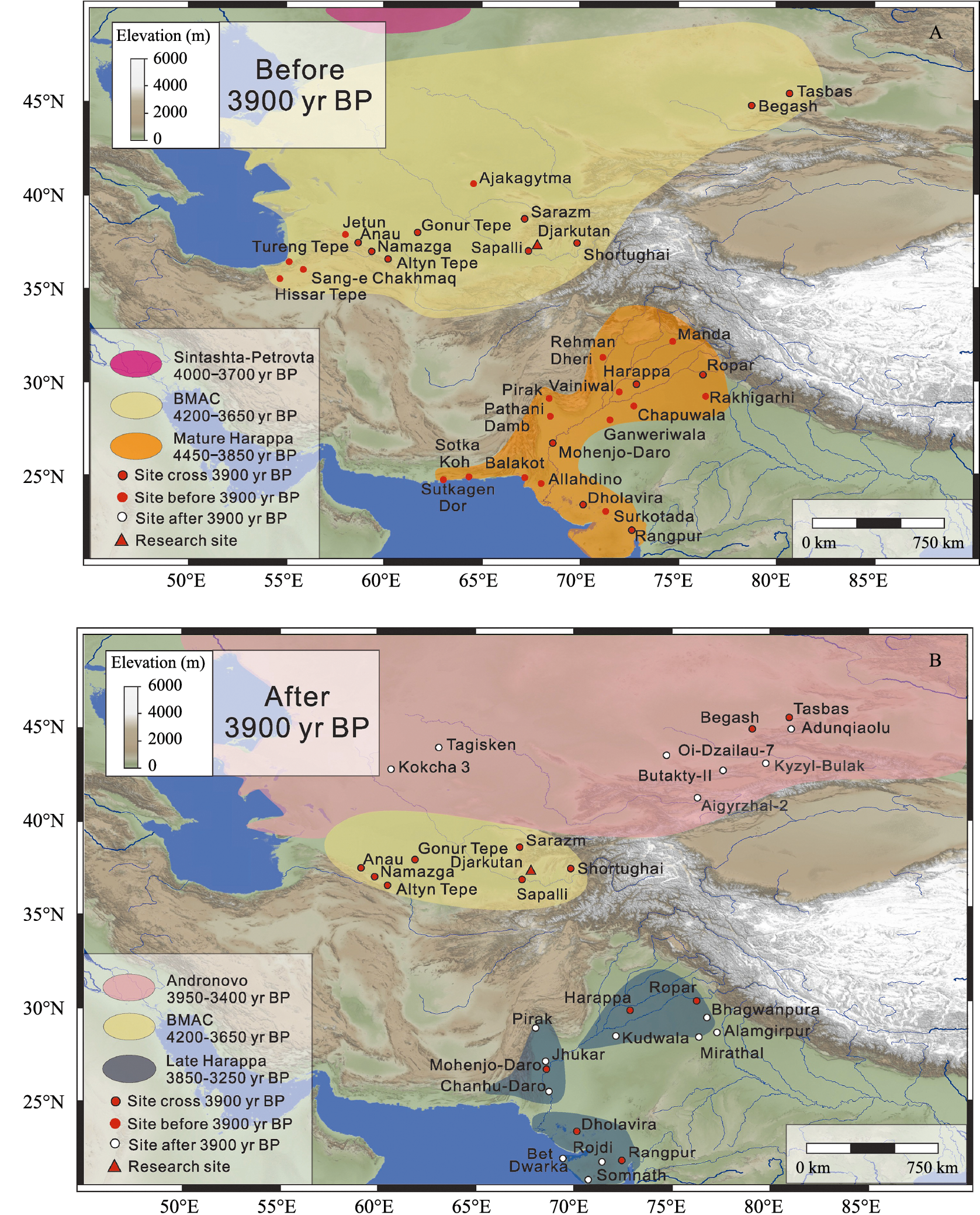 Kumar, V., Wang, W., Zhang, J. et al., 2022. Bronze and Iron Age population movements underlie Xinjiang population history. Science 376(6588), 62-69.