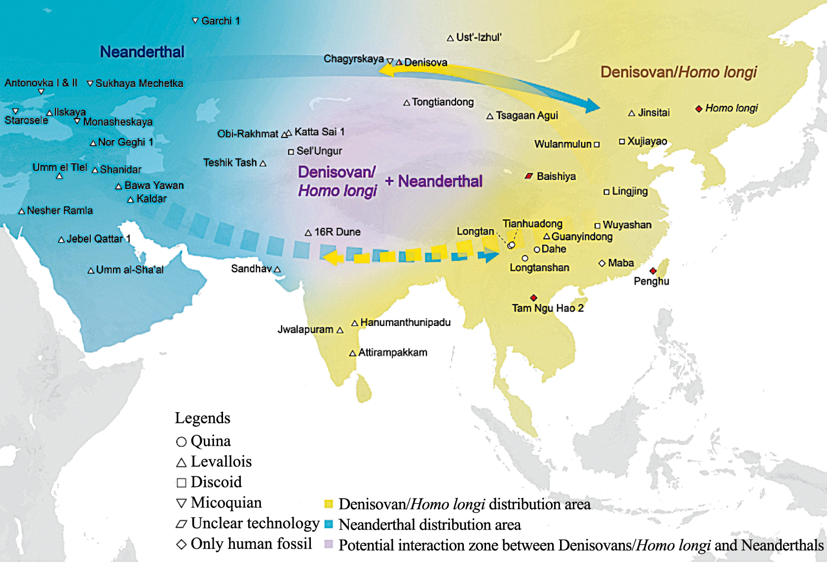 Kolobova, K.A., Roberts, R.G., Chabai, V.P. et al., 2020. Archaeological evidence for two dispersals of Neanderthals into southern Siberia. Proceedings of the National Academy of Sciences 117(6), 2879-2885. https://doi.org/10.1073/pnas.1918047117.