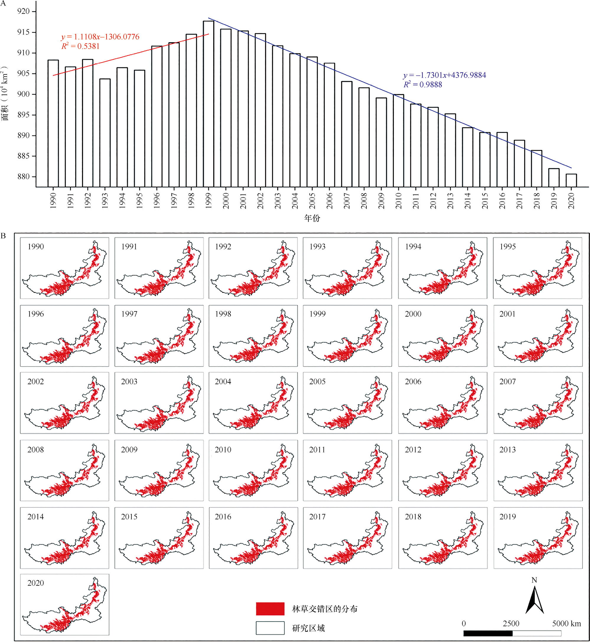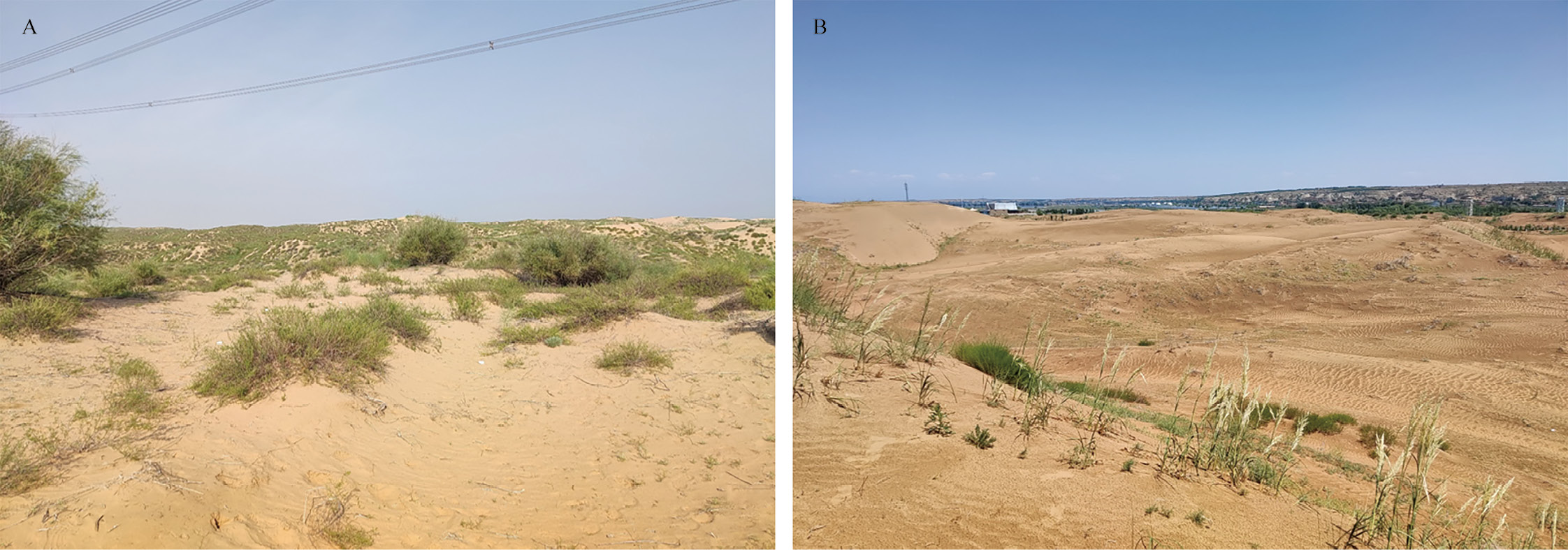 图3-50 采样生境图(A)高植被盖度生境(B) 低植被盖度生境